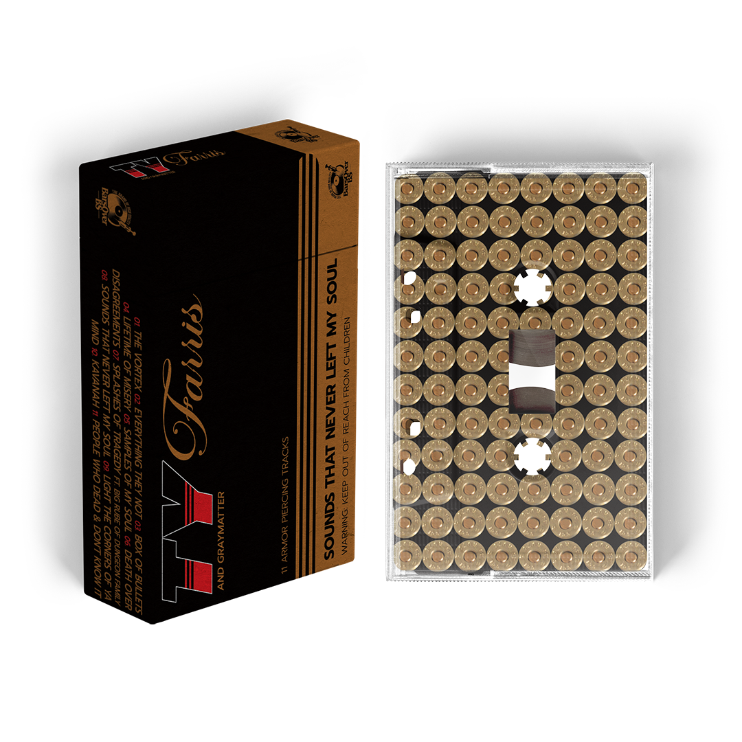 Box Of Bullet Case With Cassette Tape Covered In Bullets