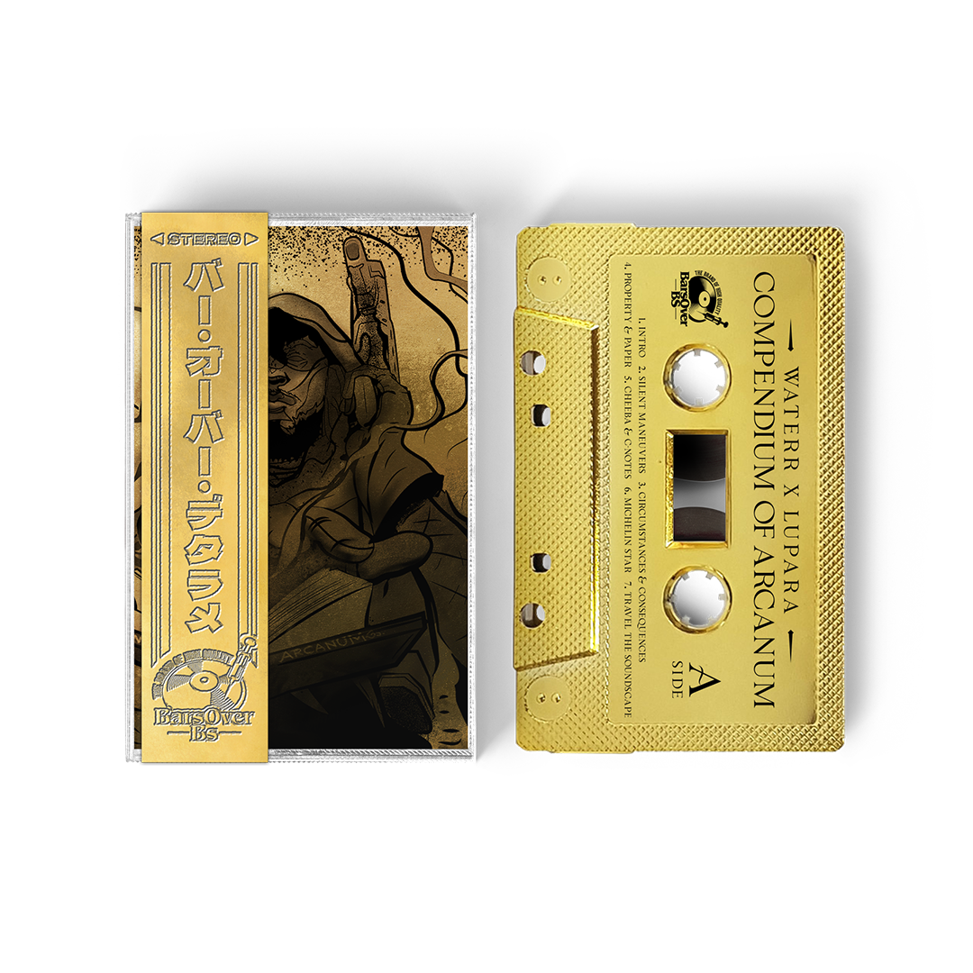 Discover the golden quality of WateRR x Lupara's Compendium Of Arcarum with the exclusive BarsOverBS Gold Cassette Tape. This high-fidelity artifact is complete with a gold-grade obi strip, hand numbered and limited to a single copy per customer. Enjoy the performance-enhancing audio crafted with precision and care.