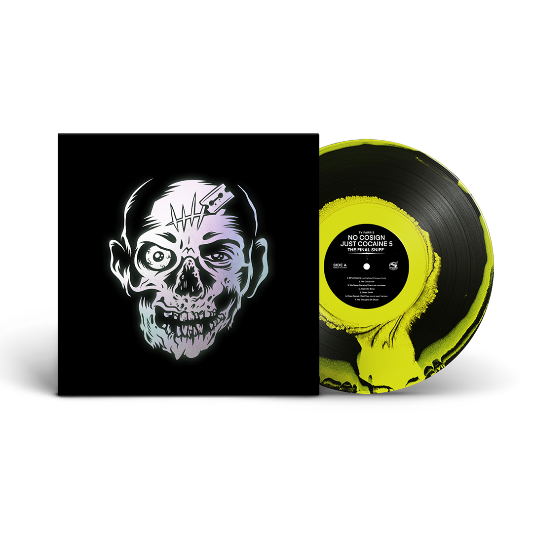 Hopefully you seen the videos on the BarsOverBs & Ty Farris Instagram pages. This is a one of a kind score. This Rob Worst Drawing of Craig The Cokehead is a alternative cover to go along with the No Cosign 5 crazy drop. Its reflective and if you hold it under a light for 20 seconds the turn off the lights it glows in the dark.